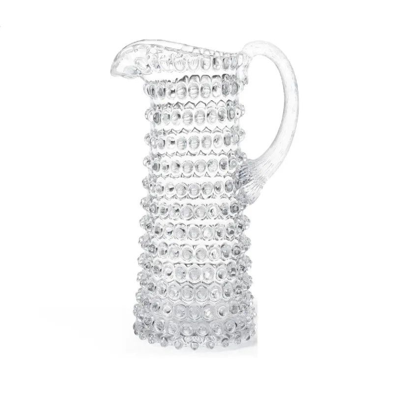 Perfekt zum Servieren von kalten Getränken wie Limonade, Wasser oder Wein geeignet. Mit den passenden Gläsern ein schöner Allzweckkrug für das Esszimmer oder draußen auf der Terrasse. Der Glaskrug mit einem Füllvolumen von 1 Liter verfügt über einen sich verjüngenden Griff für einen bequemen Halt. Diese herrliche handgefertigte Glasserie Bobbles ist der Hingucker auf dem Esstisch. Gefertigt aus Hochdekorativem Kristallglas und einer Noppenstruktur, welche das Licht auf eine herrliche Art reflektiert und gleichzeitig einen sicheren Griff bieten. Und das beste alles ist spülmaschinengeeignet. Abweichungen in Form und Farbe sind keine Fehler oder Mängel. Sie bereichern diese handgefertigten Produkte und sind die Handschrift der Glaskunst – es handelt sich um ein Unikat.