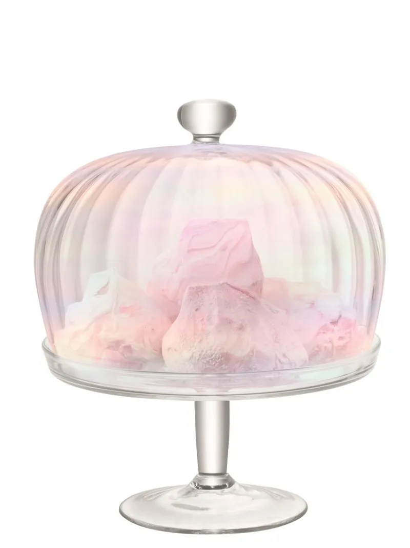 Die geschwungene, großzügig proportionierte Haube mit Ständer verfügt über eine geriffelte Optik und einen Perlmuttglanz. Machen Sie die Servierplatte zum Herzstück ihres gedeckten Tisches. Inspiriert vom schillernden Schimmer einer Perle, ergänzt dieses handgefertigte Tortenplatte die Trinkgläser und Dekanter und schafft so eine harmonische Tischlandschaft.