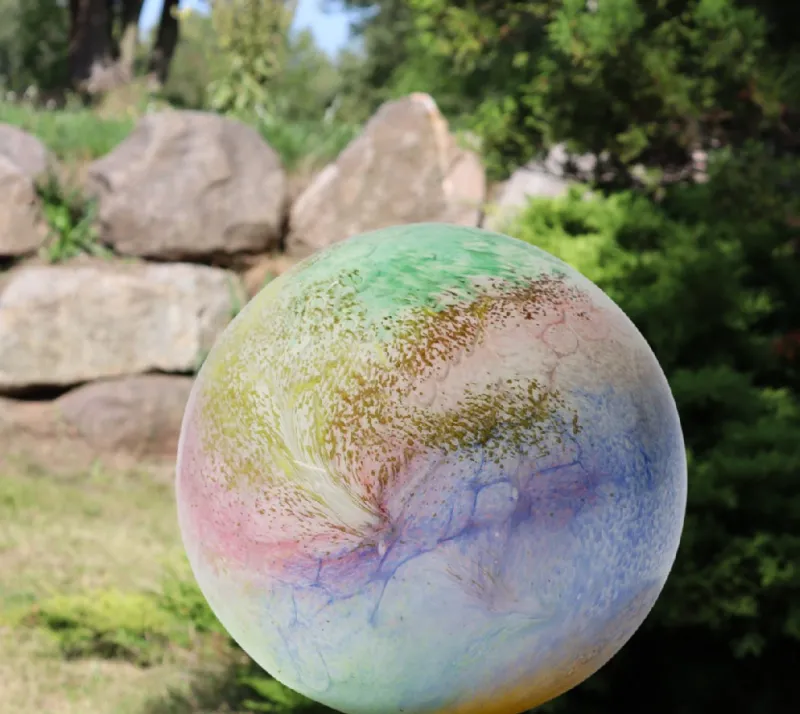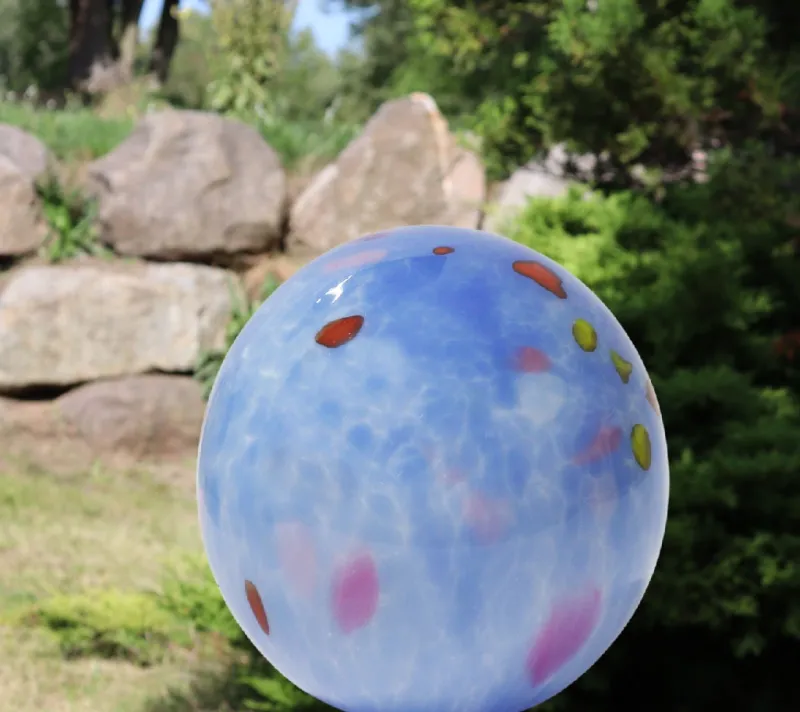 Ein kleiner Farbtupfer für ihren Garten. Ob an ihrem Gartenteich, in ihrem Steingarten, in den Beeten zwischen ihren Pflanzen und Blumen oder direkt an der Terrasse die farbigen Glaskugeln sind ein schöner Blickfang. Die mundgeblasenen Formen und Figuren fügen sich schön in ihr Gartenambiente ein. Die Gartenkugel mit einem Durchmesser von ca. 30 cm fügt sich nahtlos in die Umgebung von Steingärten oder Sträuchern ein und erzeugt eine stimmungsvolle Atmosphäre.