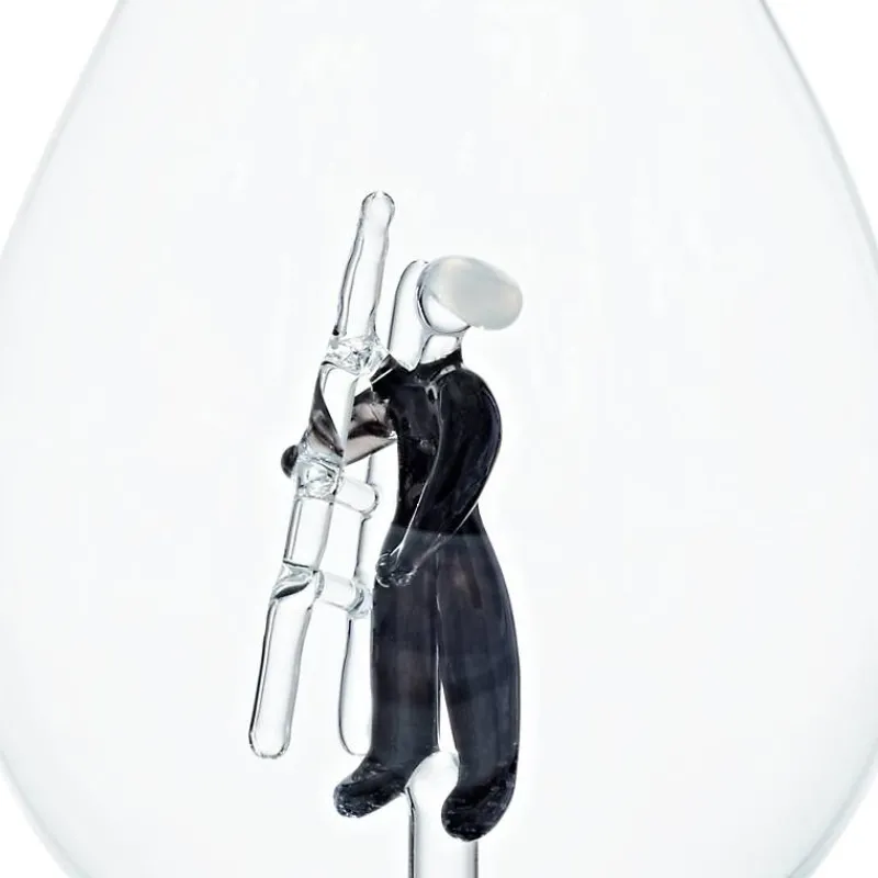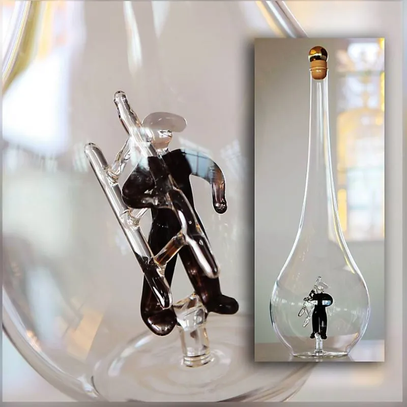 - hochfertige Geschenkflasche Glasflasche Tropfenform mit Glasfigur Schornsteinfeger im Inneren zum selbst befüllen