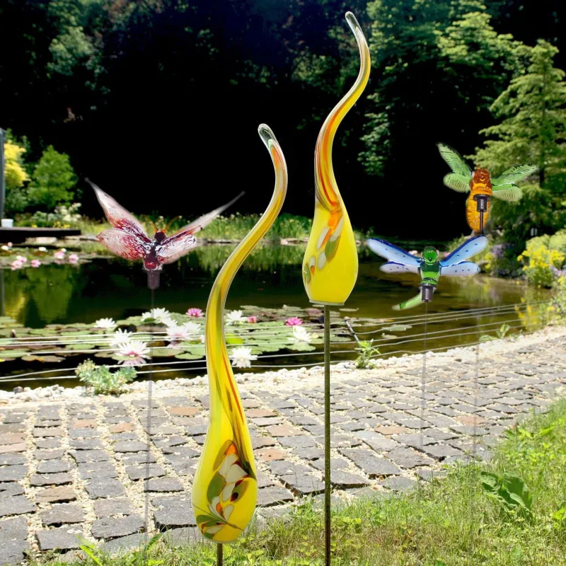 Verleihen Sie Ihrem Garten oder Ihrem Zuhause einen Hauch von Natur und Kunst mit dieser bezaubernden, handgefertigten Glasbiene mit Stab.