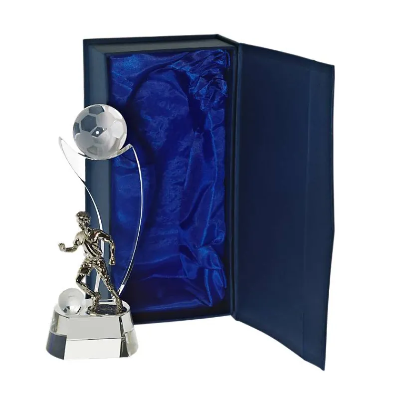 - gläserne Fußballtrophäe Fußballspieler mit Ball
