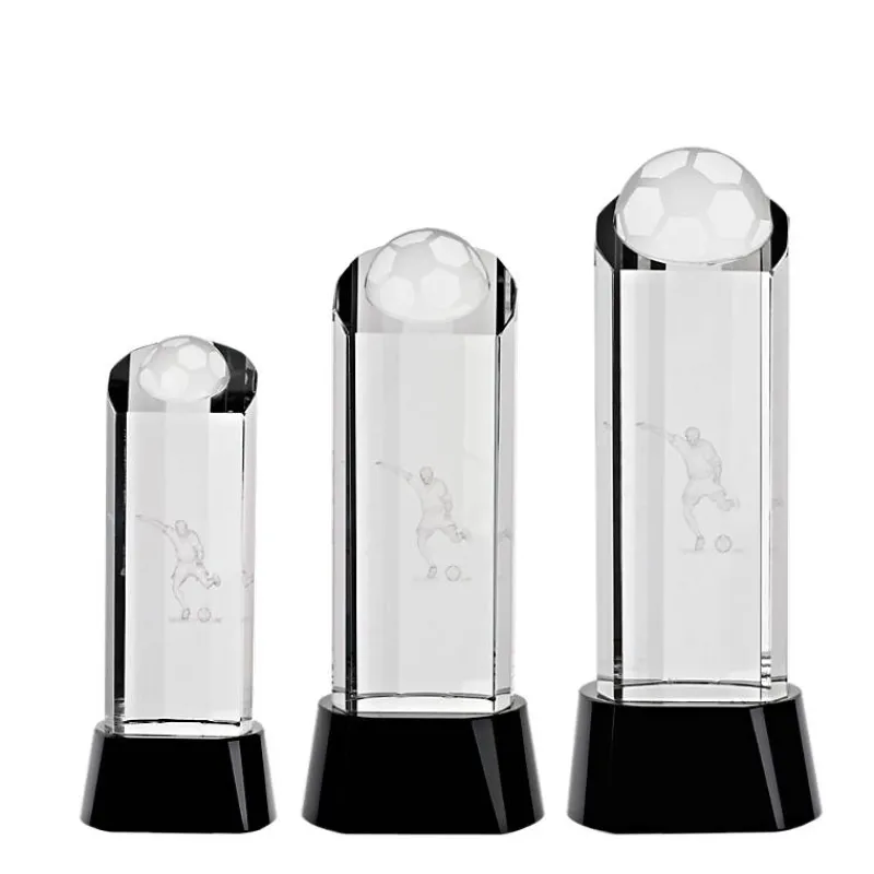 - gläserne Fußballtrophäe Goalgetter – Fußballspieler in 3D