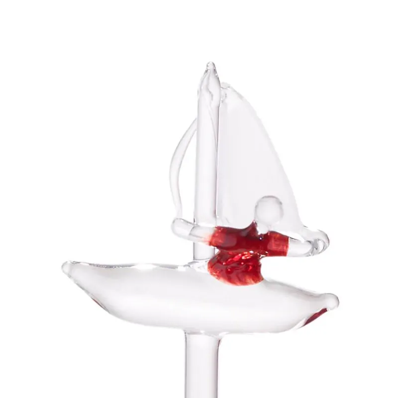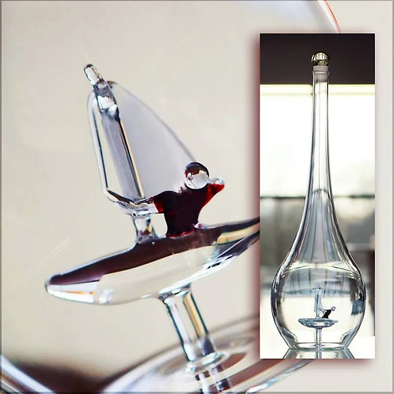 - hochfertige Geschenkflasche Glasflasche Tropfenform mit Glasfigur Windsurfer Segler im Inneren zum selbst befüllen
