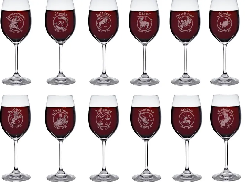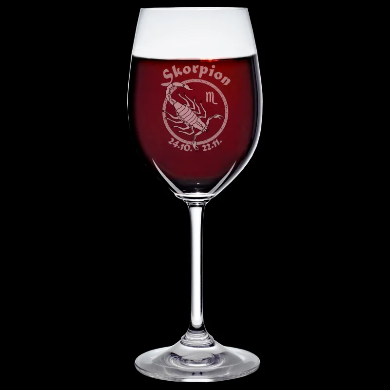 Klassisches einfaches Weinglas mit Sternzeichen. Universlles Trinkglas für Weiß- und Rotweine. Schönes Geschenk zu verschiedenen Anlässen für Freunden oder Familienmitgliedern.