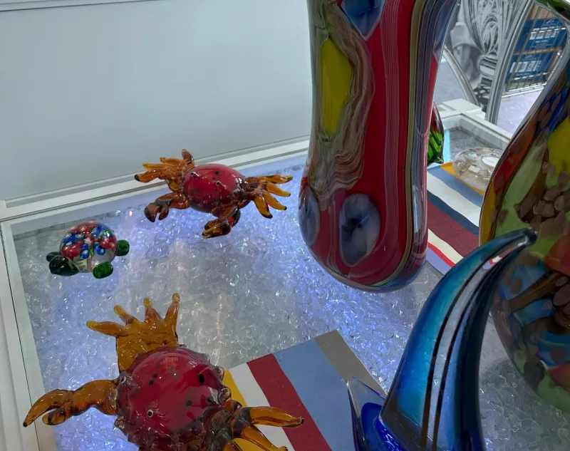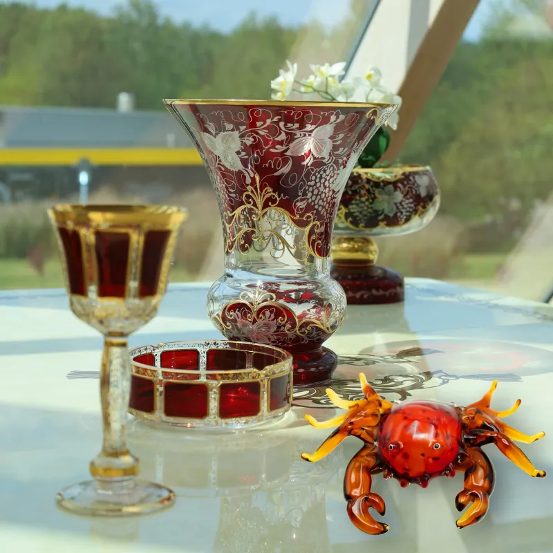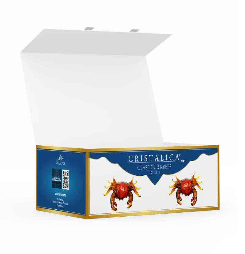 Entdecken Sie die faszinierende Unterwasserwelt mit unserer kunstvoll gestalteten Glasfigur eines Krebses in lebendigem Orange, verziert mit feinen schwarzen Details. Jedes Detail dieser Figur wird von erfahrenen Glasbläsern mit größter Sorgfalt und Präzision gefertigt, wodurch jedes Stück zu einem Kunstwerk von höchster Qualität wird. Ob als Blickfang in einer Vitrine oder als Teil einer Sammlung von Meeresfiguren, dieser Krebs wird sicherlich bewundernde Blicke auf sich ziehen.
