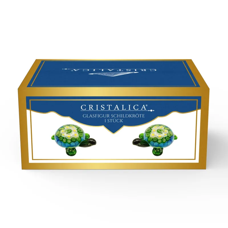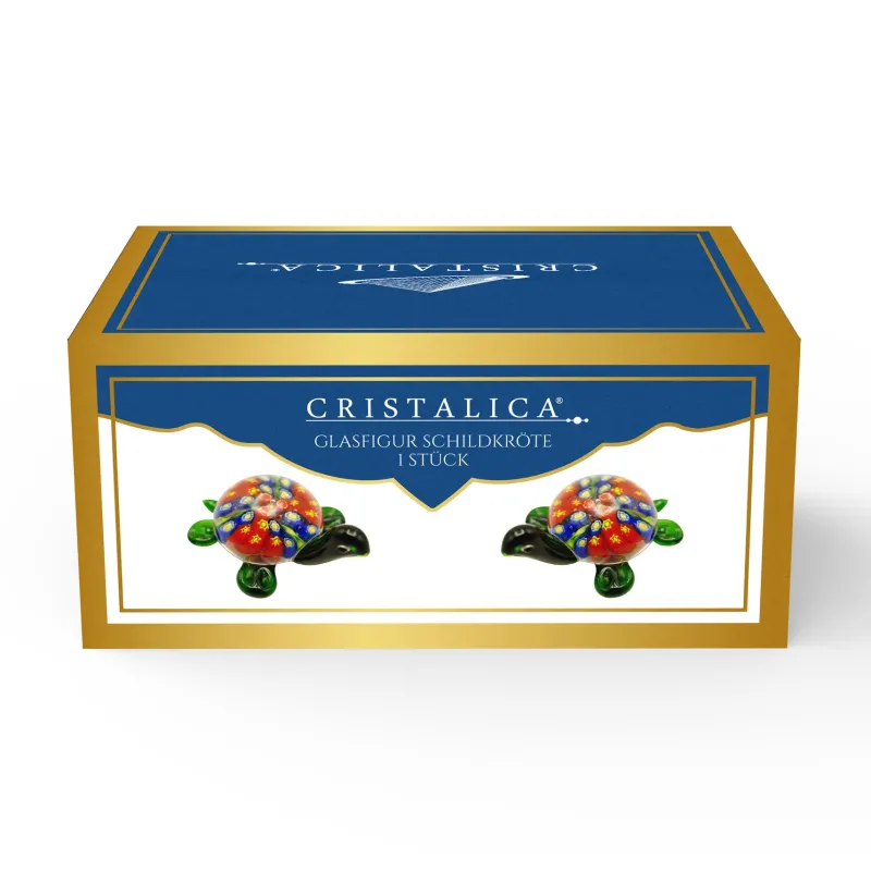 Diese bezaubernde Glasfigur einer Schildkröte, mit einer Höhe von etwa 5,5 cm und einer Länge von ca. 11 cm, ist ein herausragendes Beispiel für handwerkliche Meisterkunst und farbenfrohe Gestaltung. Jede Figur wird in sorgfältiger Handarbeit gefertigt, wodurch jedes Stück zu einem einzigartigen Kunstwerk wird.