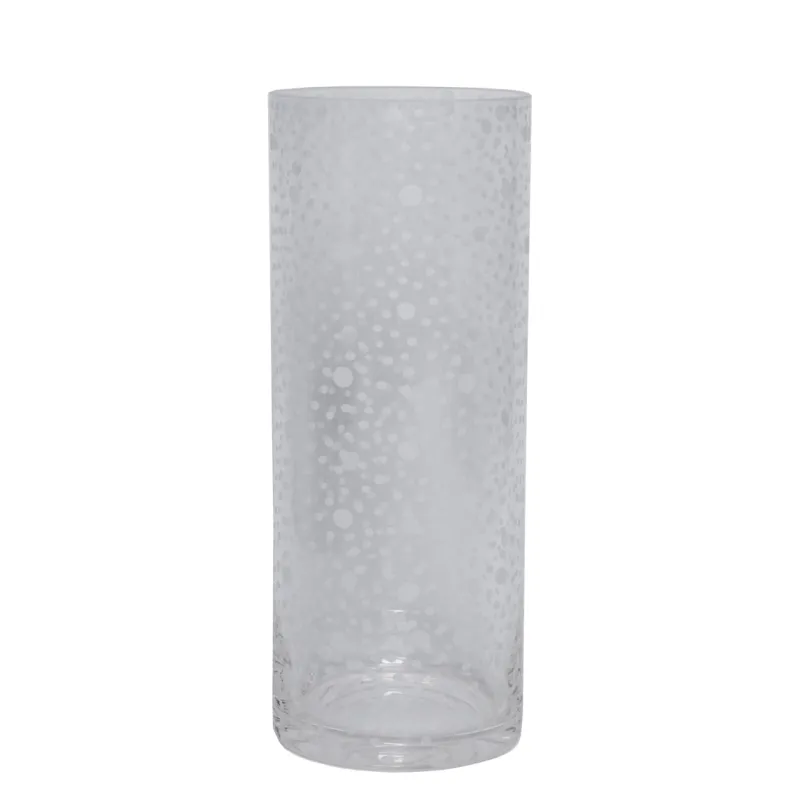 Zylinderförmige standfeste Glasvase mit einer allover Punkt Gravur. Geeignet für Blumensträuße, langstielige Blumen, Gestecke oder Kunstblumen. Perfekt für die Gestaltung ihrer Wohnung oder als Präsent zum Geburtstag Jahrestag, Hochzeit oder andere Anlässe.