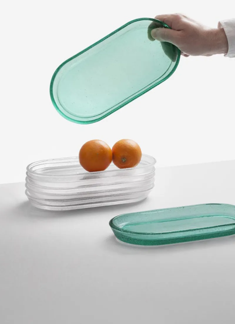 - moderne, staplebare Schale, Platte zum Anrichten von Speisen auf dem Tisch oder Buffet.