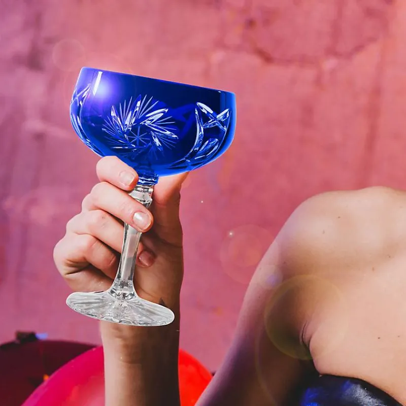 - elegante, zeitlose Sektschale, handgeschliffen mit Schleuderstern