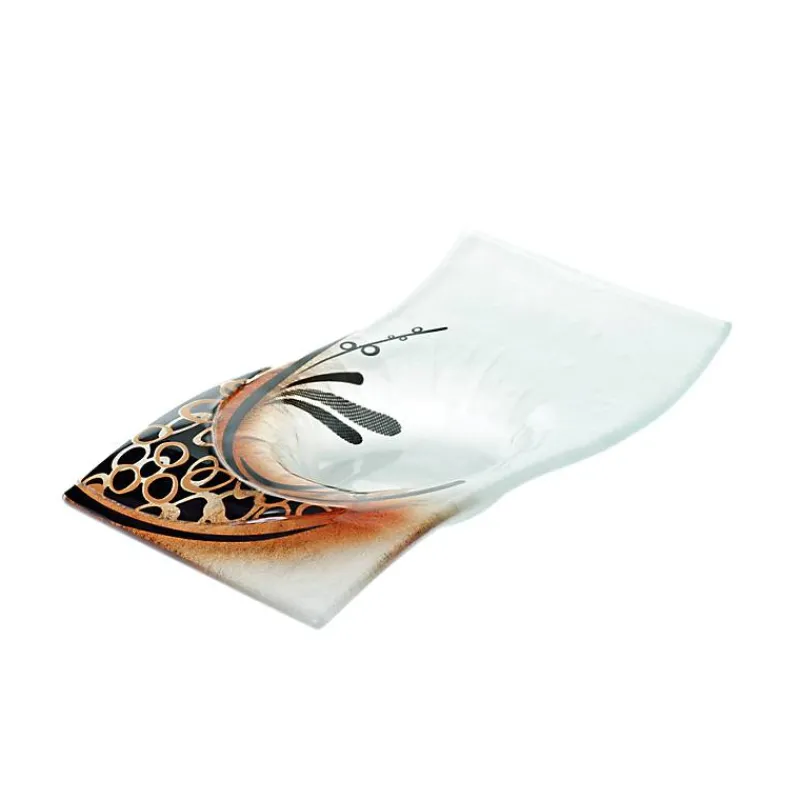 - Höhe ca. 5cm / Länge ca. 19cm / Breite ca. 13cm / Gewicht ca. 0,3 kg / Material Kristallglas Fusingglas