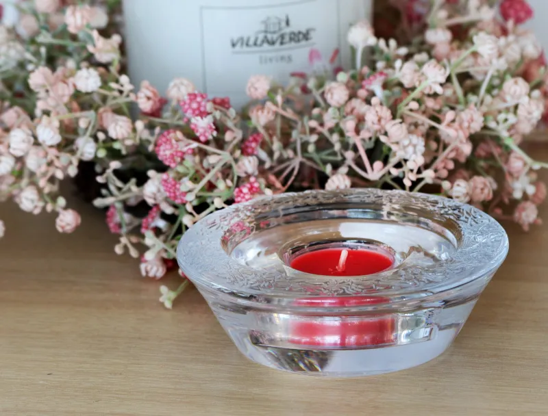 Einzigartiker Kernhalter für Teelichter und Standkerzen. Runde Glasschale mit spielerischen Verzierungen auf der Oberseite . Überall dort wo es klassisch sein soll .