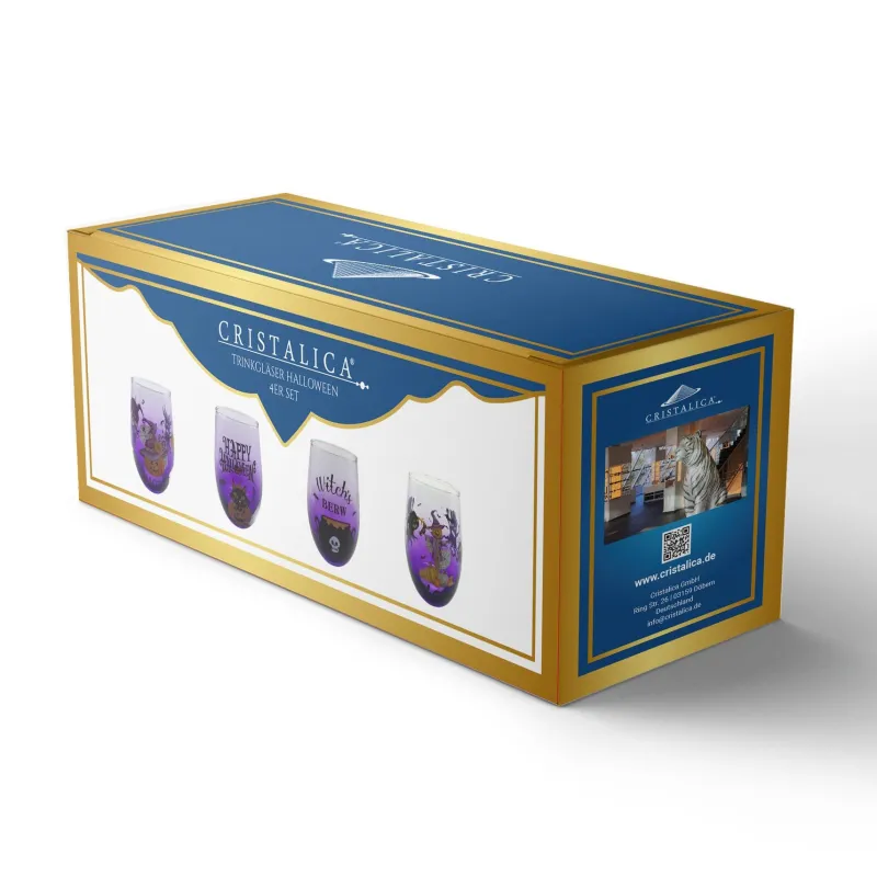 Die edle Farbkombination aus Lila und Weiß setzt die gruseligen Halloween-Motive perfekt in Szene. Jedes Glas in diesem Set ist individuell gestaltet und trägt ein einzigartiges, handgefertigtes Halloween-Motiv. Die verspielten und gleichzeitig stilvollen Designs machen jedes Getränk zum Hingucker und sorgen für die richtige Portion Grusel. Ob für schaurige Cocktails, Limonade oder einfach Wasser – diese Gläser setzen Ihre Getränke perfekt in Szene.