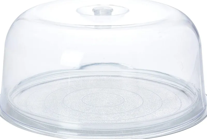 - transparentes Glas (Teller) und klarer Kunststoff (Haube)