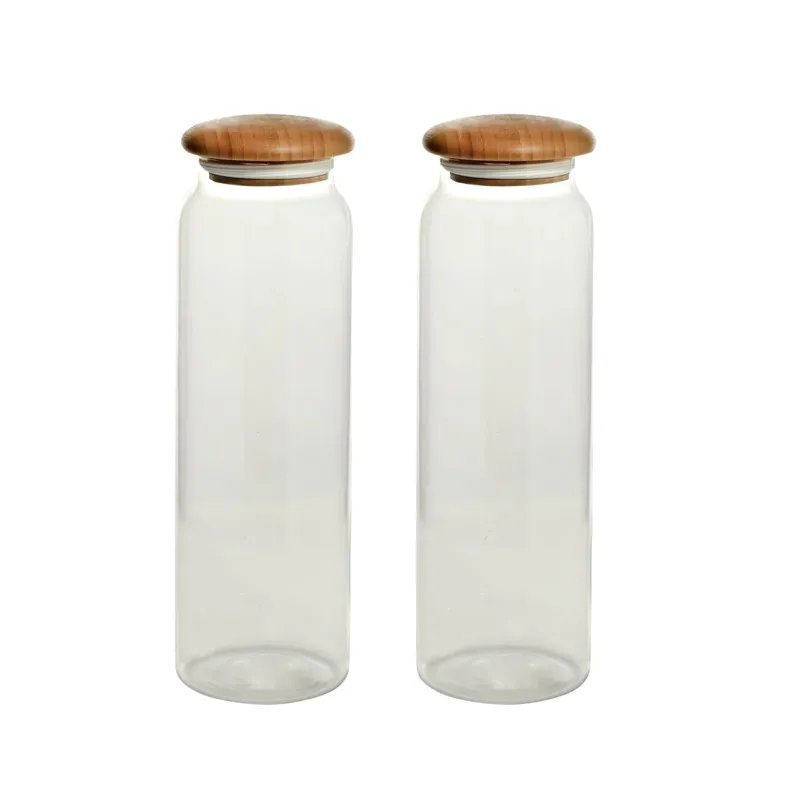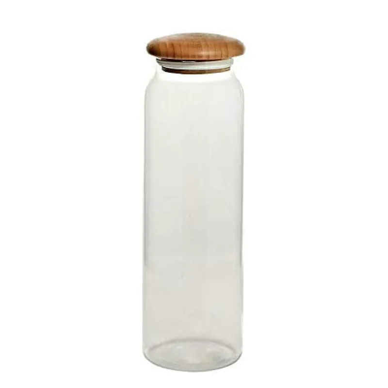 - Behälterdose aus Glas mit Holzdeckel aus Bambus