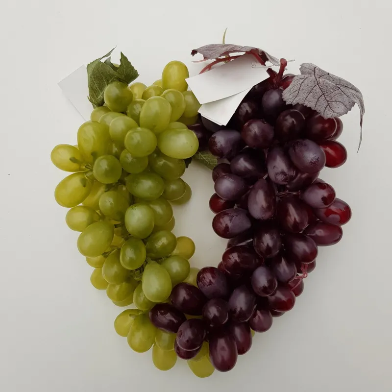 Dekoobst Attrappe Weintrauben 36 Stück mit Blättern, verschiedene Sorten und Größen