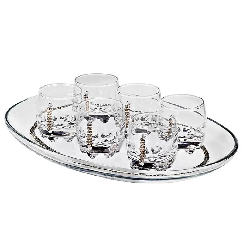 Höhe: Glas: ca. 5,5 cm Tablett: ca. 2,5 cm