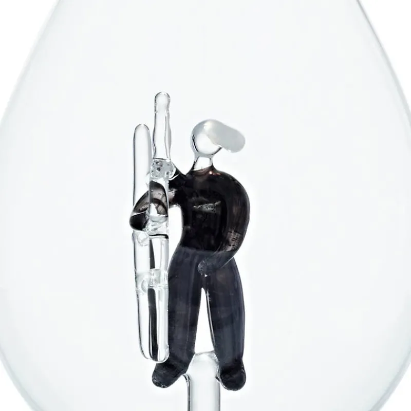 - hochfertige Geschenkflasche Glasflasche Tropfenform mit Glasfigur Schornsteinfeger im Inneren zum selbst befüllen