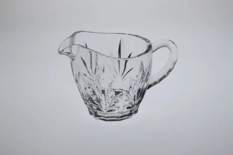 Schönes Glas-Milchkännchen für den Kaffee- oder Frühstückstisch zum Servieren von Milch oder Kaffeesahne. Die Kollektion Imperial setzt sich aus einer Reihe von anmutigen und imponierenden Glasartikeln zusammen. In traditioneller Fertigung werden die Karaffen, Whiskyset, Trinkgläser, Schalen, Saucieren, Vasen oder Kerzenhalter gefertigt. Die einzigartigen Glasprodukte sind durch ihre Herstellung bedingt kleine Kunstwerke und ziehen ihren Betrachter in den Bann. Egal ob zum Verschenken, Dekorieren oder Sammeln, unsere Kollektion erfreut sich größter Beliebtheit bei Jung und Alt.