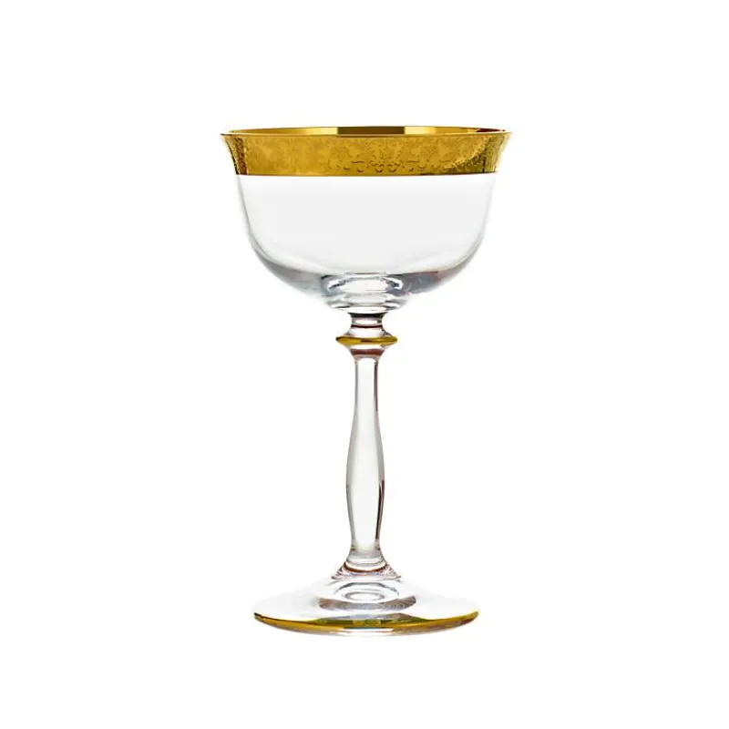 Das perfekte Geschenk für jeden Anlass. Golden Age vereint zeitlose moderne mit elegantem Design und fasziniert durch seine feinen Formen, des dünnen Kristallglases. Die Kollektion besteht aus diversen Gläser sowie Karaffen, Schalen, Glocken und Vasen. In aufwendiger Handarbeit werden die mundgeblasen Produkte der Kollektion zu Unikaten gefertigt. Mit einer speziellen Technik wird das 24 karätige Gold auf das Produkt aufgetragen. Die Blumenornamente im Goldrand und die Brillanz des Glases macht die Kollektion zu etwas einzigartigem und lässt Ihr zu Hause in neuem Glanz erstrahlen. Ihre Gäste werden Beeindruckt sein.