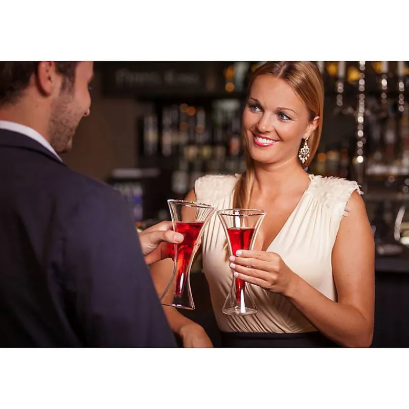Das ausgefallene Design des Sektglases ist der Hingucker auf ihrer nächsten Party! Das zierliche flötenartige Innenglas wird von einen bauchig geschwungen Standfuß stilecht umgeben und bringt den Inhalt besonders gut zur Geltung. Der Thermoeffekt des doppelwandigen Glases sorgt für einen längeren eiskalten Genuss. Hergestellt aus hochwertigem Borosilikatglas ist das Glas äußerst bruchsicher, kratzfest, hitzebeständig und spülmaschinengeeignet. Durch den Lufteinschluss zwischen beiden Glasschichten ist ein Anfassen immer angenehm!