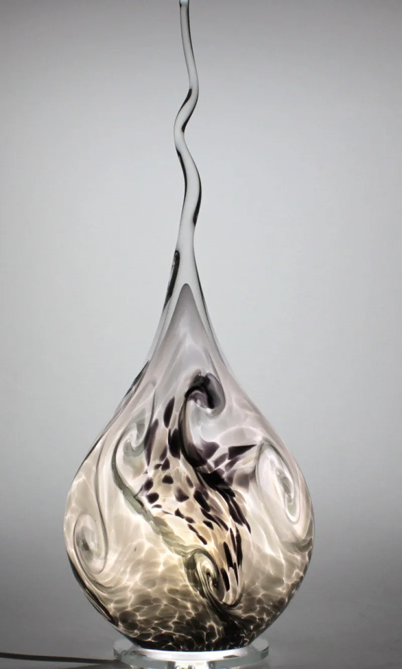 Schöne stimmungsvolle Stehlampe aus Glas für den Innenbereich. Ob als dekorative Tischlampe im Wohnzimmer, als Nachtlicht im Schlafzimmer oder als stilvolle Lampe im Wintergarten, die beleuchtete Glasfigur, in Form einer lodernden Flamme, ist überall ein absoluter Hingucker. Sie werden beim Betreten des Raums ihre wahre Freude haben und Ihre Gäste, Freunde und Familie ins Staunen versetzen. Die Glaskörper werden im aufwendigen Überfangverfahren hergestellt und sind alle mit einer zusätzlichen weißen Glasschicht im inneren unterlegt. Das sorgt für die optimale Lichtbrechung und Beleuchtung. Abweichungen in Form und Farbe sind keine Fehler oder Mängel. Sie bereichern diese handgefertigten Produkte und sind die Handschrift der Glaskunst – es handelt sich um ein Unikat. Bei Lieferung sind Glassockel, LED Birne und 1 Kabel mit EU-Stecker und Kippschalter enthalten.