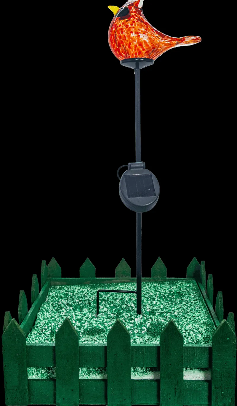 Dieser Glasvogel ist nicht nur tagsüber ein Highlight, sondern erleuchtet auch bei Einbruch der Dämmerung dank des integrierten Solarlichts.