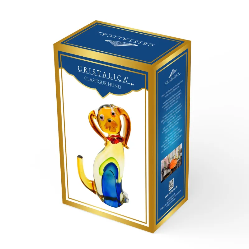 Diese exquisite Glasfigur eines Hundes, mit einer Höhe von etwa 20,5 cm und einer Länge von ca. 12,5 cm, ist ein beeindruckendes Beispiel für feinste Handwerkskunst und detailverliebte Gestaltung. Jede Figur wird mit großer Sorgfalt und in aufwendiger Handarbeit gefertigt, wodurch jedes Stück zu einem einzigartigen Kunstwerk wird.