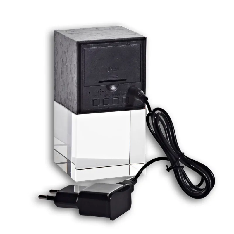 - Glasblock mit aufgesetzer Uhr im Holzoptik (digital)