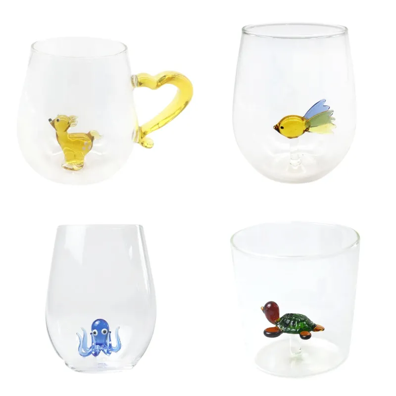 Verleihen Sie Ihren täglichen Momenten des Genusses einen Hauch von Kunst mit unserem handgemachten Trinkglas, das mit einer faszinierenden, innenliegenden Figur verziert ist. Wählen Sie zwischen einem zarten Oktopus, einer eleganten Schildkröte, einem verspielten Fisch oder einem niedlichen Bambi, die sorgfältig im Inneren des Glases eingebettet sind. Jedes dieser Gläser ist ein Meisterwerk handwerklicher Präzision, das Funktionalität mit künstlerischem Design auf unvergleichliche Weise kombiniert.