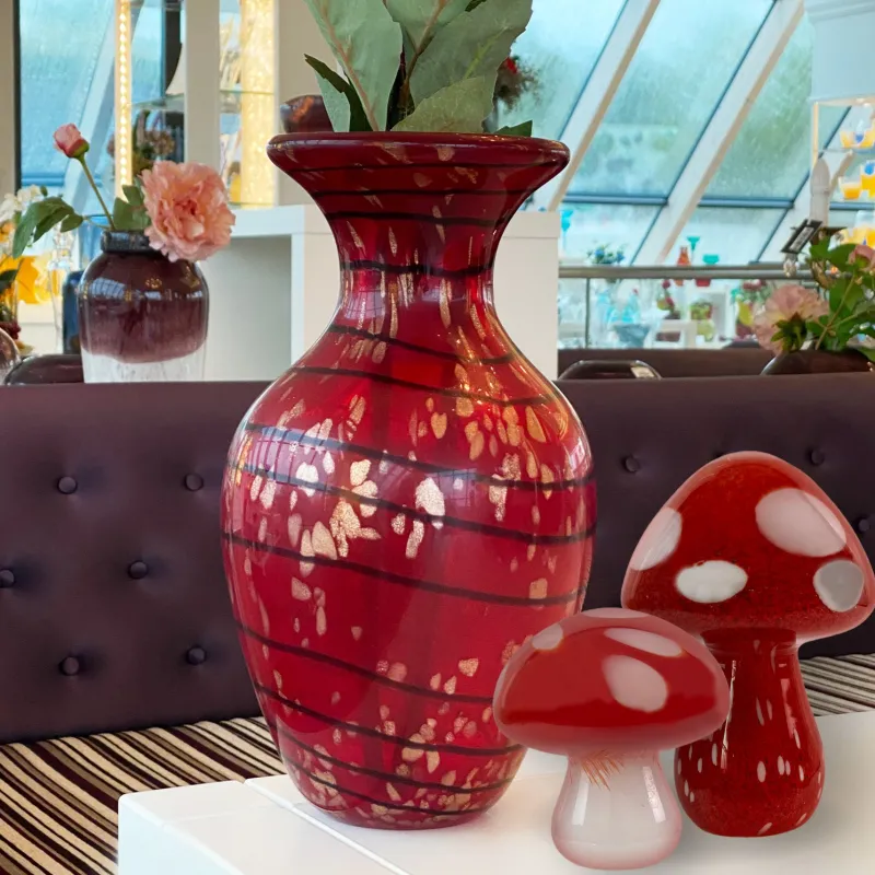 Mit seiner lebhaften Rot-Weiß-Kombination und dem ansprechenden Pilz-Design bringt dieser Dekorationsgegenstand einen Hauch von Frische und Freude in Ihre Einrichtung. Die weißen Punkte auf dem roten Glas sorgen für einen interessanten Kontrast und machen ihn zu einem Blickfang in jedem Raum. Er ist sowohl funktional als auch ästhetisch ansprechend und verleiht Ihrem Zuhause eine fröhliche Note.