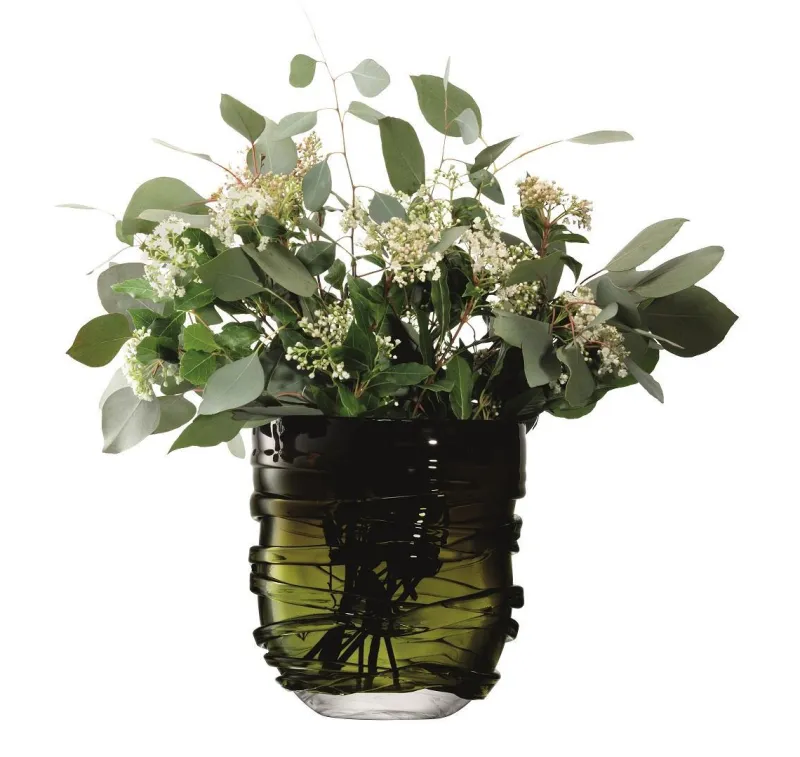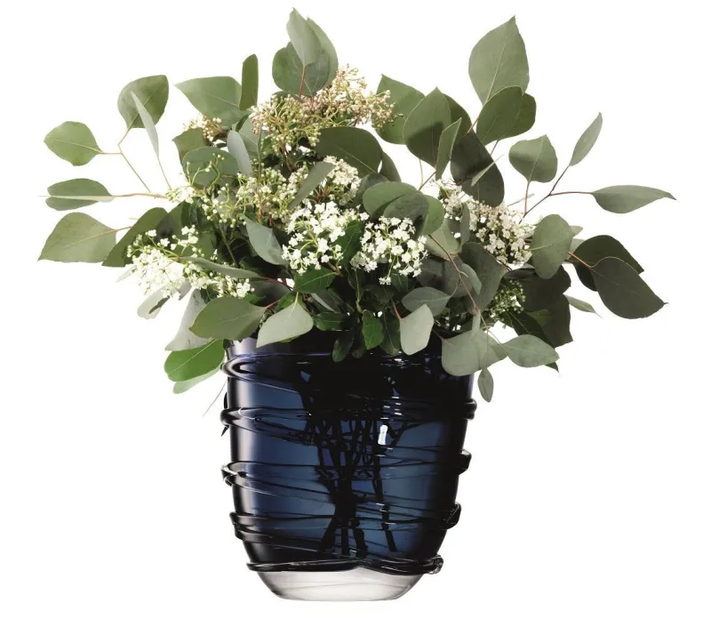 Inspiriert von weichen Garnbündeln werden dicke Glasbänder von Hand um die schwere mundgeblasene Vase gewickelt. Jede Ovale Vase ist umhüllt von einem fadenförmigen Dekor, das aufgrund des manuellen Verfahrens zu einem Unikat wird. Die standfeste Vase mit dem auffälligen Design ist ideal für Blumen oder als eigenständiges Dekorationsobjekt geeignet.
